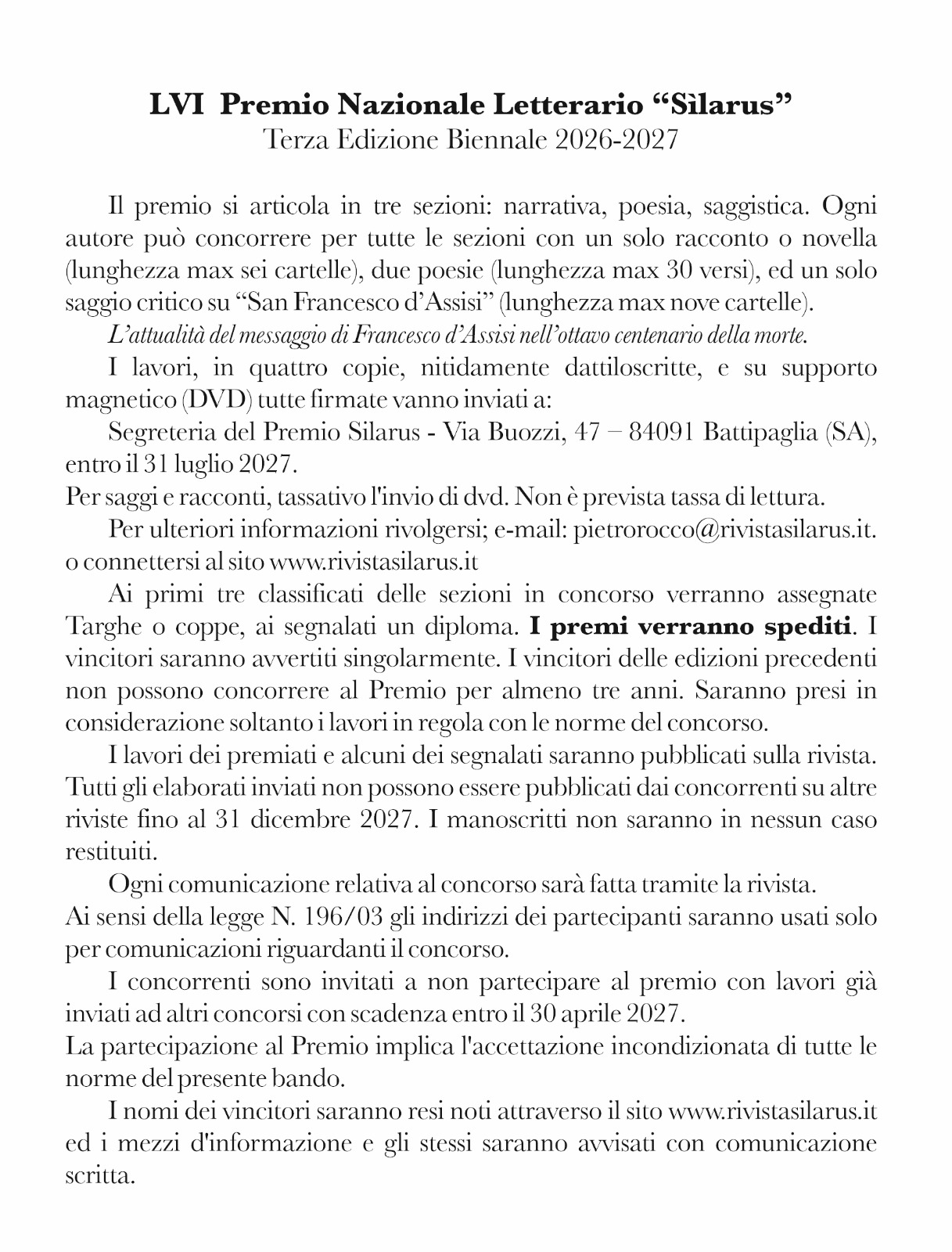 Ecco i dettagli del prossimo Premio Nazionale Silarus: